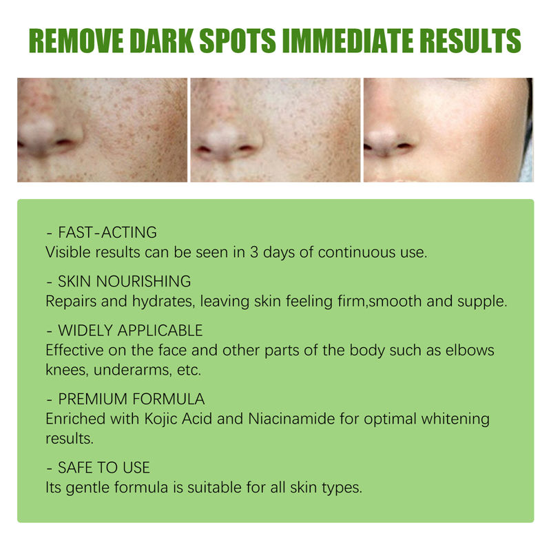 Ce qui peut être résolu:Tache de rousseur, tache radiante, taches de vieillesse, taches sombres, coup de soleil, tache de grossesse