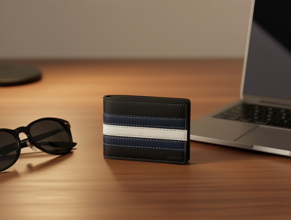 Portefeuille pour homme Jd, 7 pouces, fin, rayé, en PU, fermeture à rabat, boîte cadeau