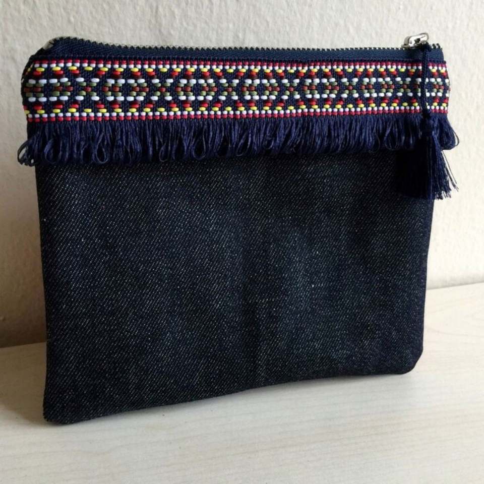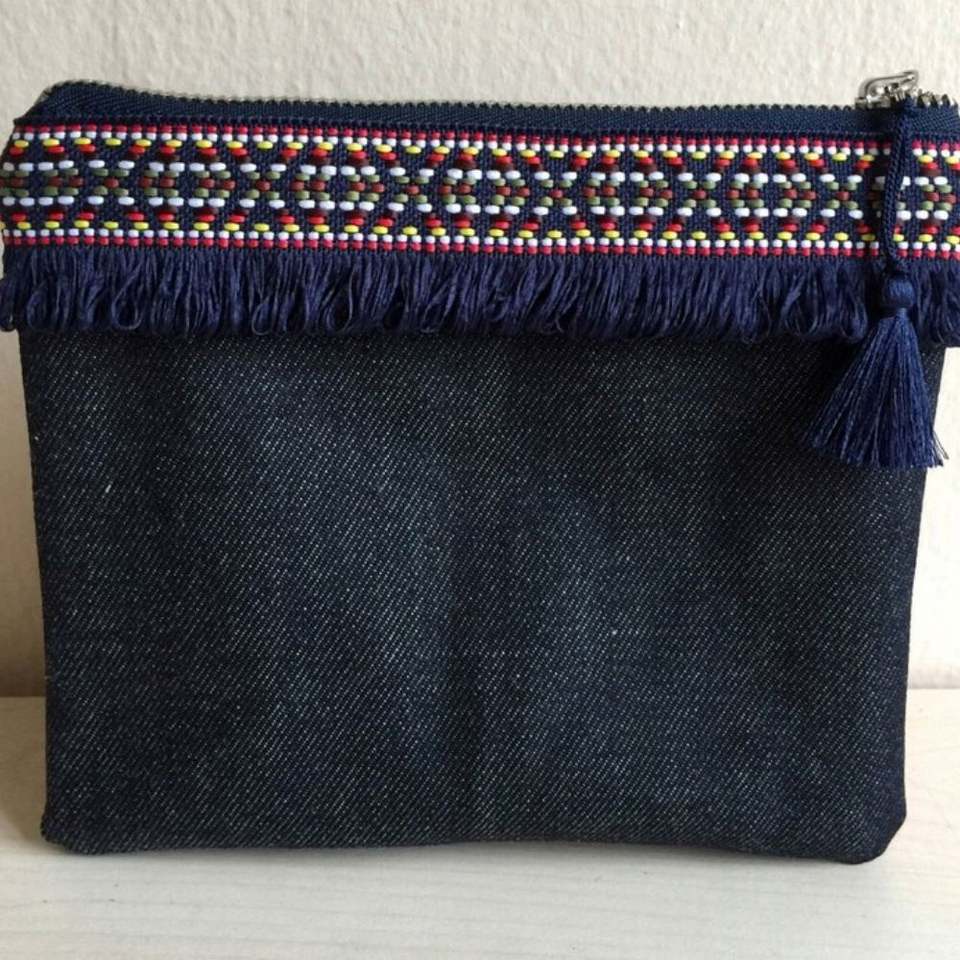 Jean Custom Large Capacity Eco-Friendly Denim Cosmetic Bag Boho Tassel Zipper Pouch Portable Travel Makeup Organizer Durable