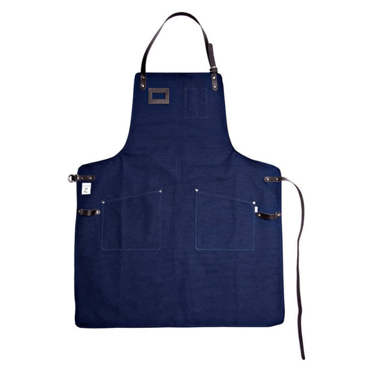 Tablier en jean avec poche zippée, tablier de cuisine en denim de coton