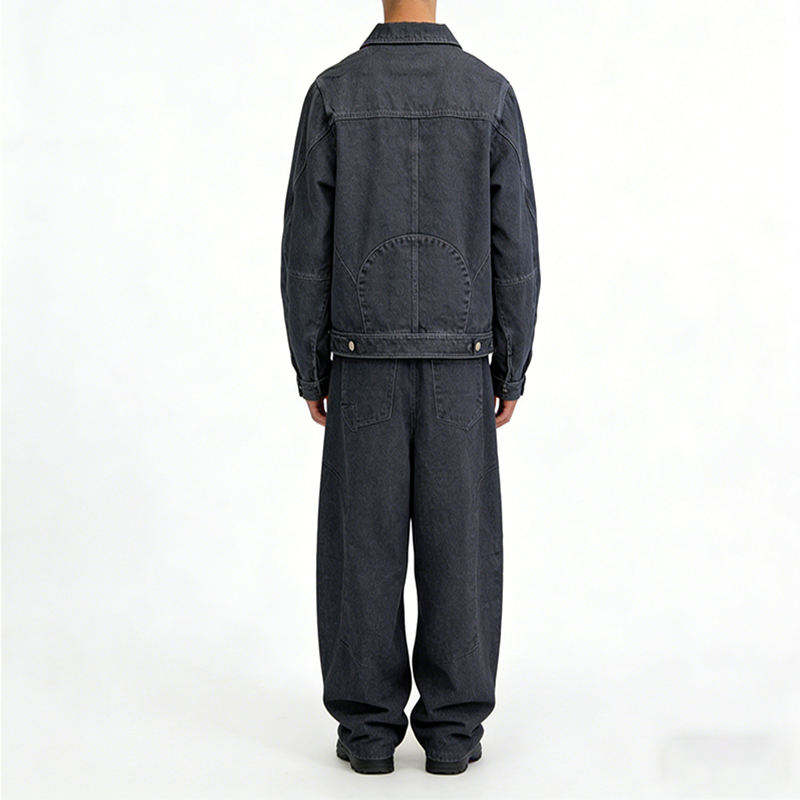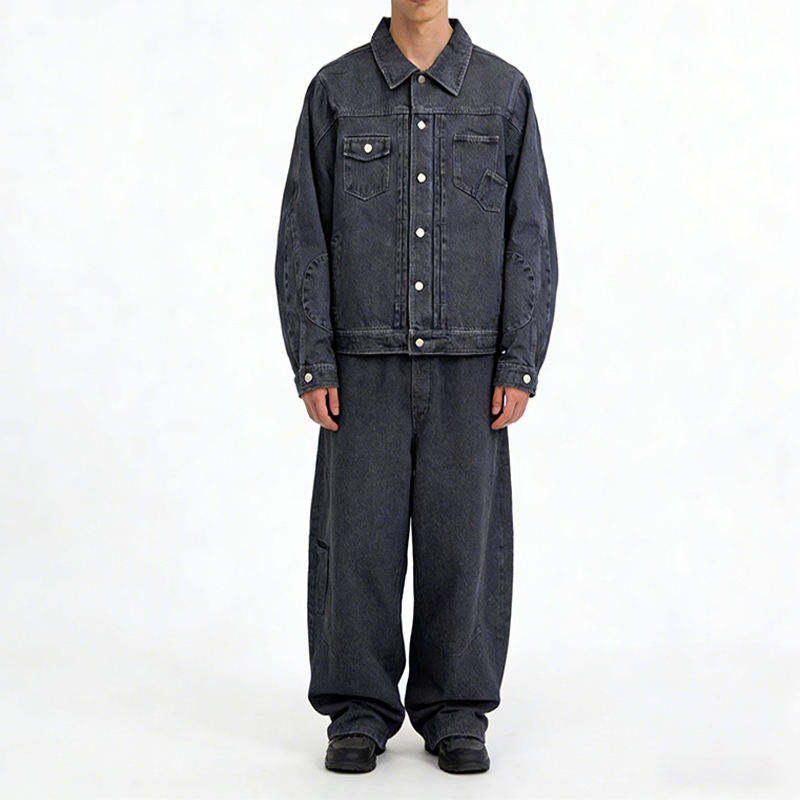 Ensemble de veste en jean et pantalon en denim délavé imprimé pour homme, ensemble deux pièces en jean bleu, costume en jean personnalisé pour homme
