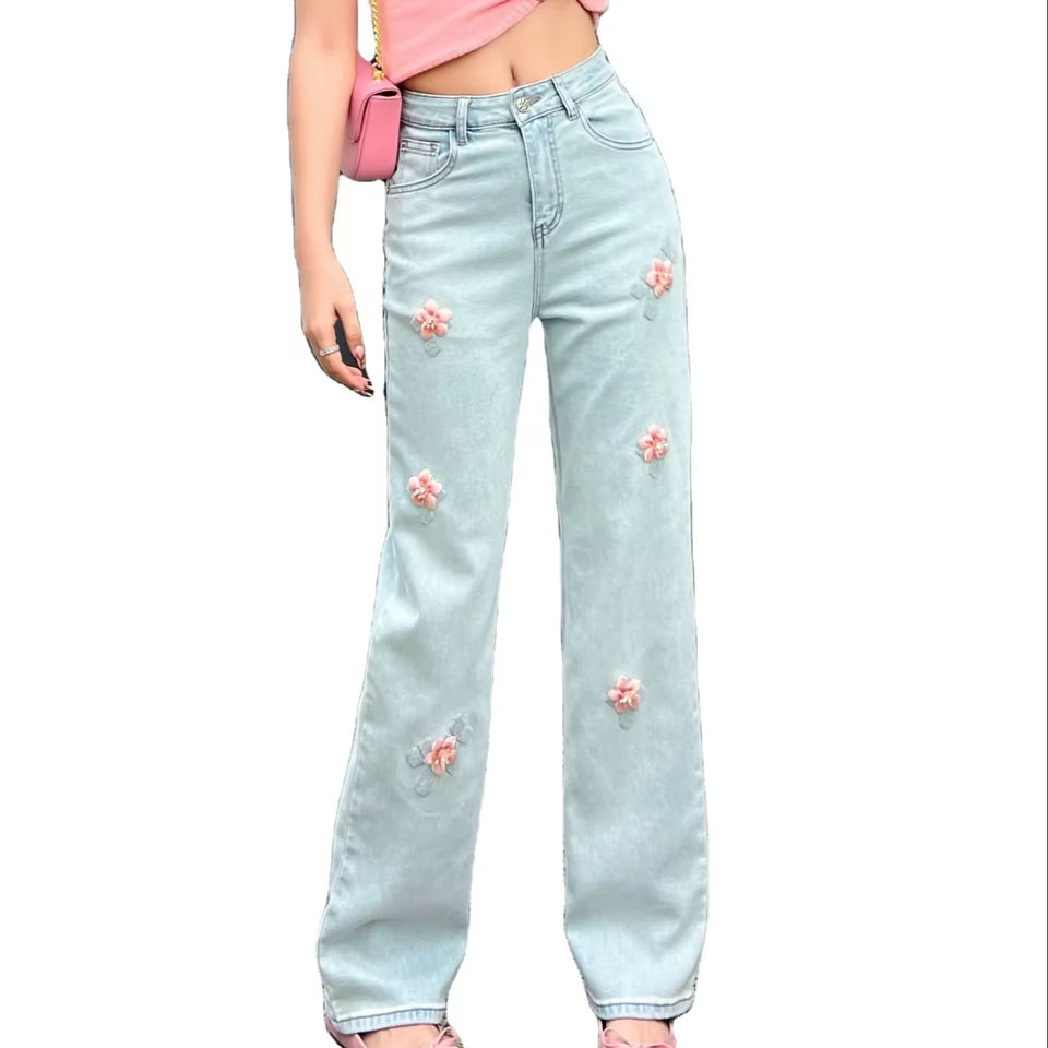 Jeans Service OEM Coutume Image Modèle Contrat Haute qualité Broderie Fond de serviette Couture à la main Pantalon à jambes larges 99910