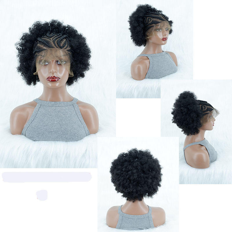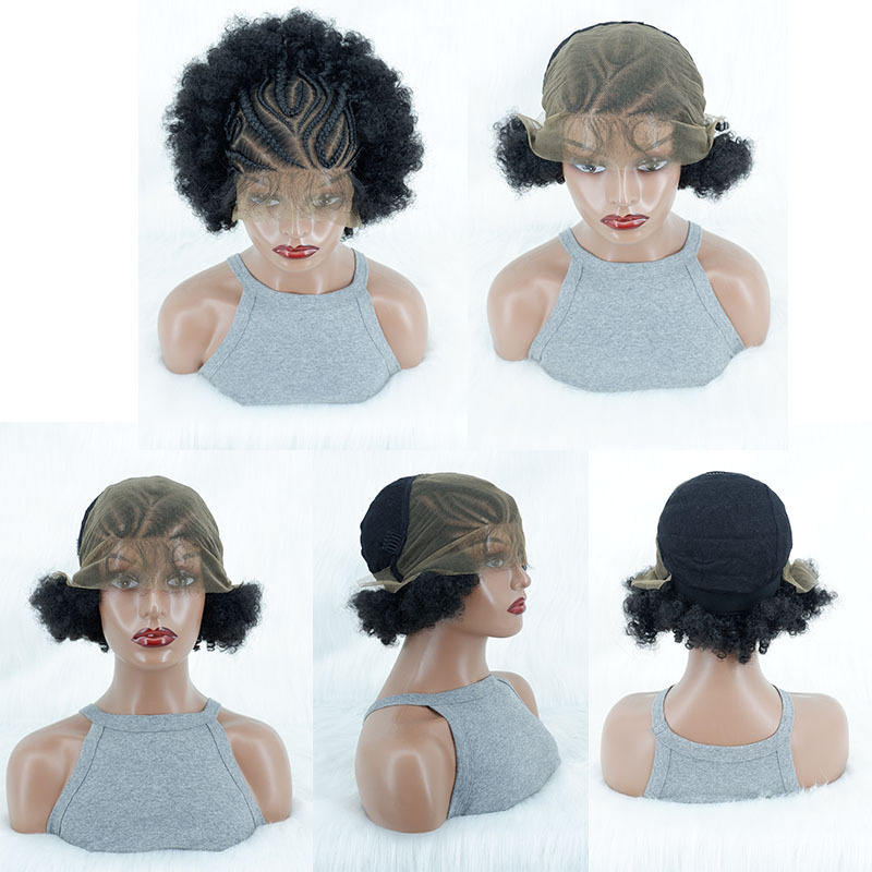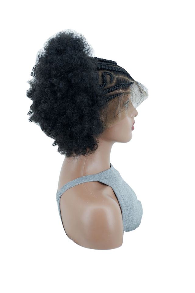 Nom du produit:Afro crépus bouclés Remy tressé à la main dentelle perruques de cheveux humains