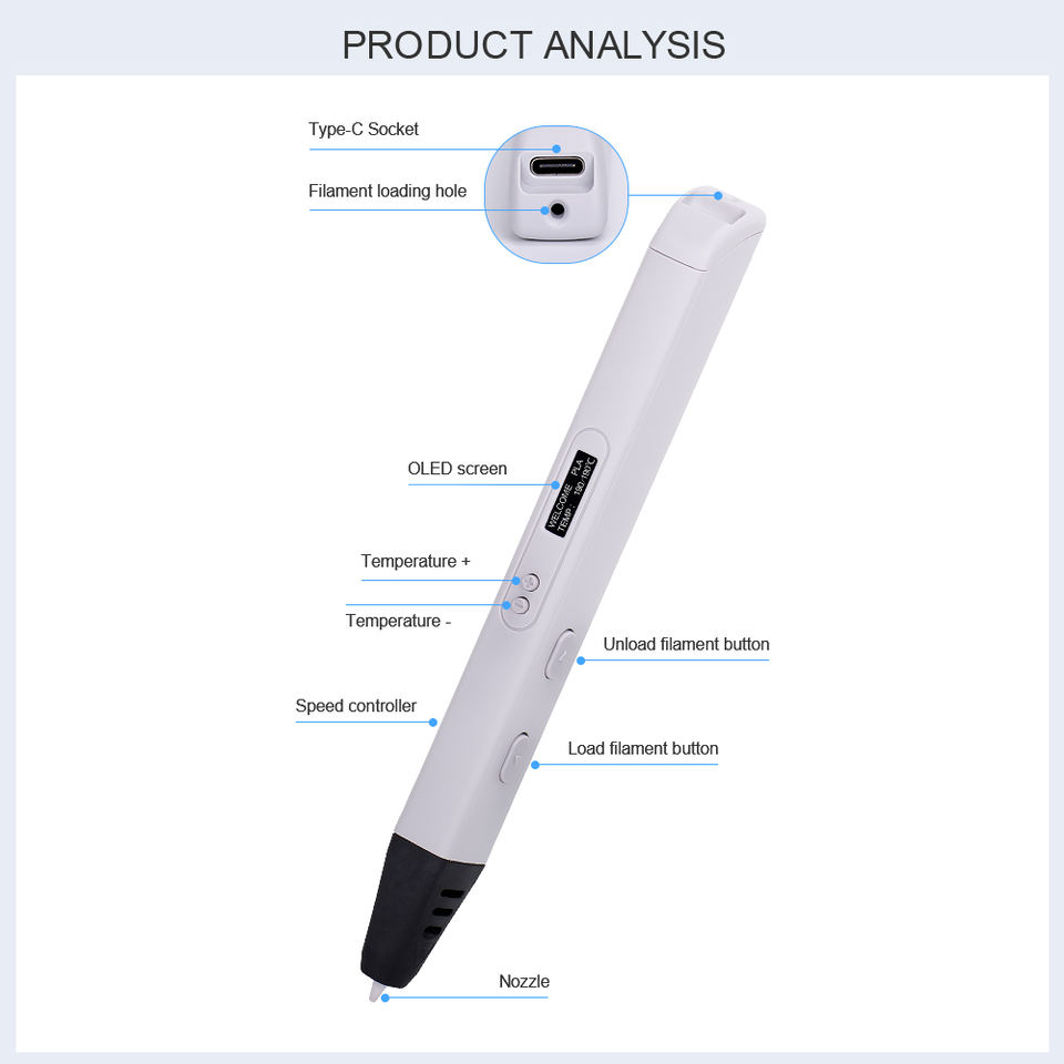 Stylo d'Impression 3D Jer Factory Personnalisé, Jouets Éducatifs Bestsellers pour Enfants, Kit Stylo Imprimante 3D avec Filament PLA