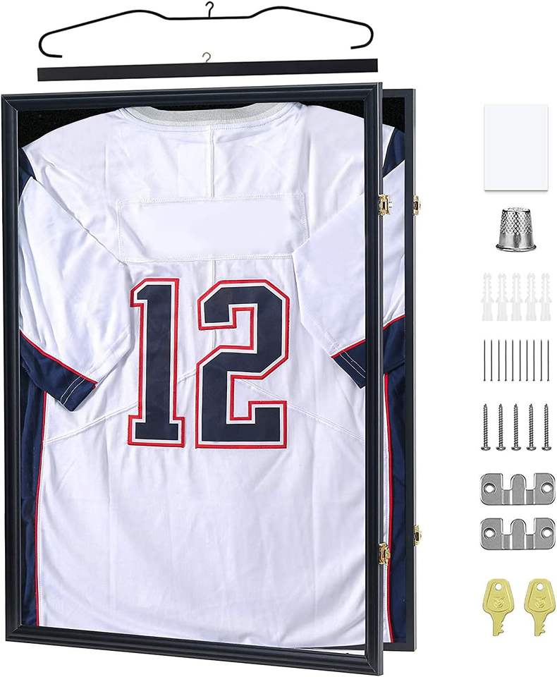 Jersey cadre vitrine ombre boîte pour Baseball basket-ball Football Hockey sport chemises uniforme 98% Protection UV verre acrylique