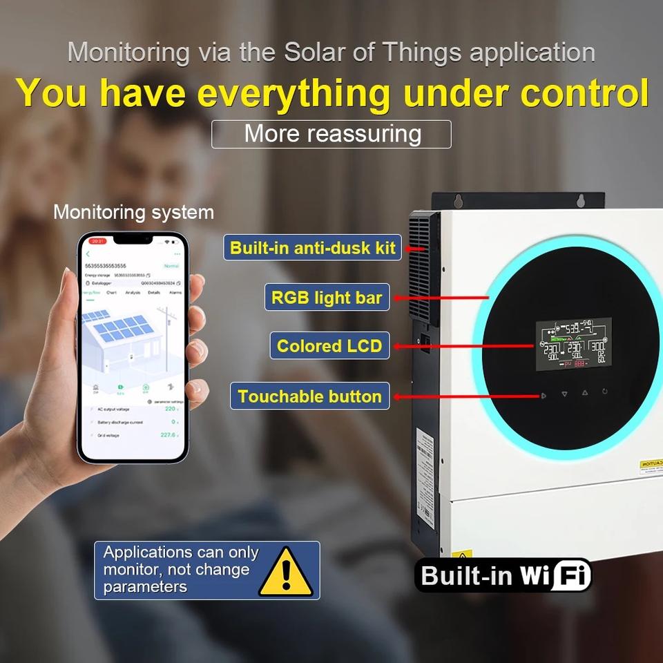 Onduleur Solaire Hybride Jesudom Axpert VM IV 4000W 6000W à Double Sortie 230VAC Onde Sinusoïdale Pure 24V/48V avec Chargeur Solaire MPPT 120A