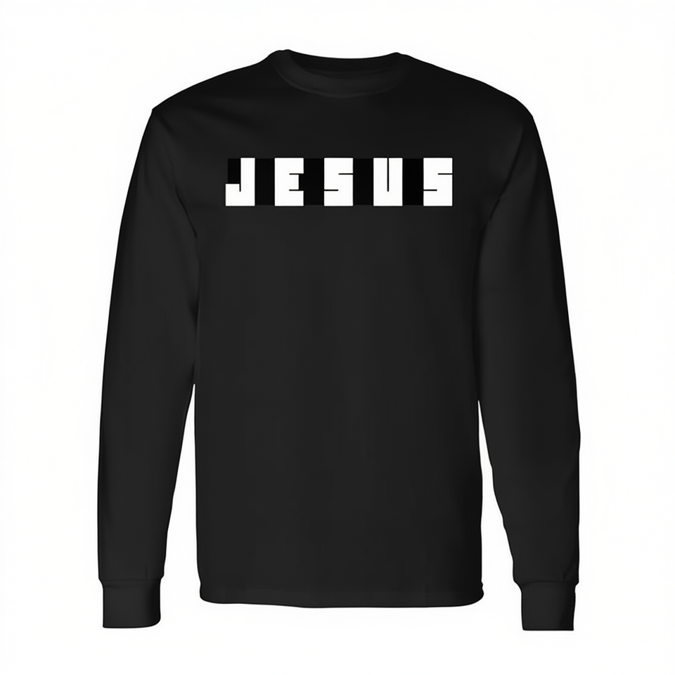T-shirt à manches longues religieux chrétien abstrait Jésus, noir premium