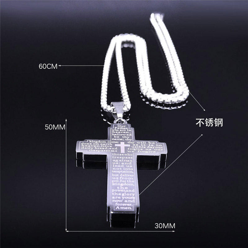 Jésus Crucifix Seigneurs Prière Basé sur la Foi Christian Bible Croix Bijoux De Mode Mâle En Acier Inoxydable Religieux Pendentif Colliers