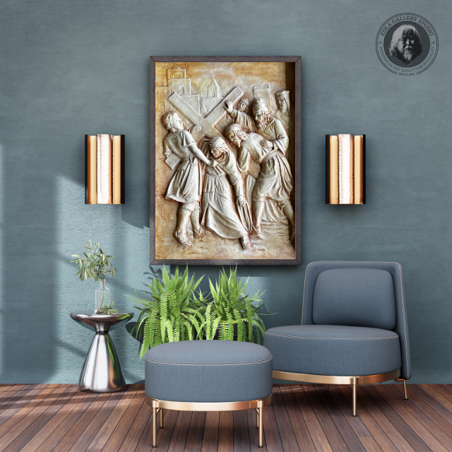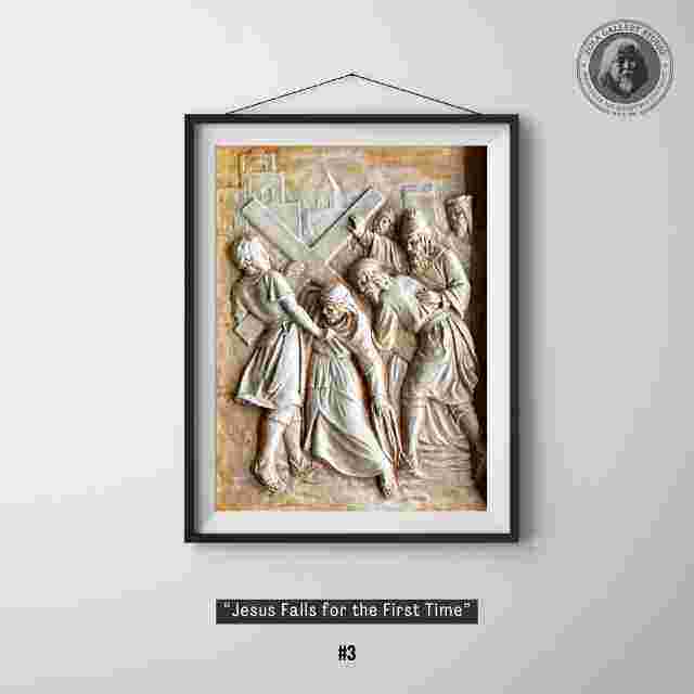 Le soulagement de Jésus tombe pour la première fois représente un moment émouvant de sacrifice parfait pour l'art de dévotion ou l'affichage intérieur sacré