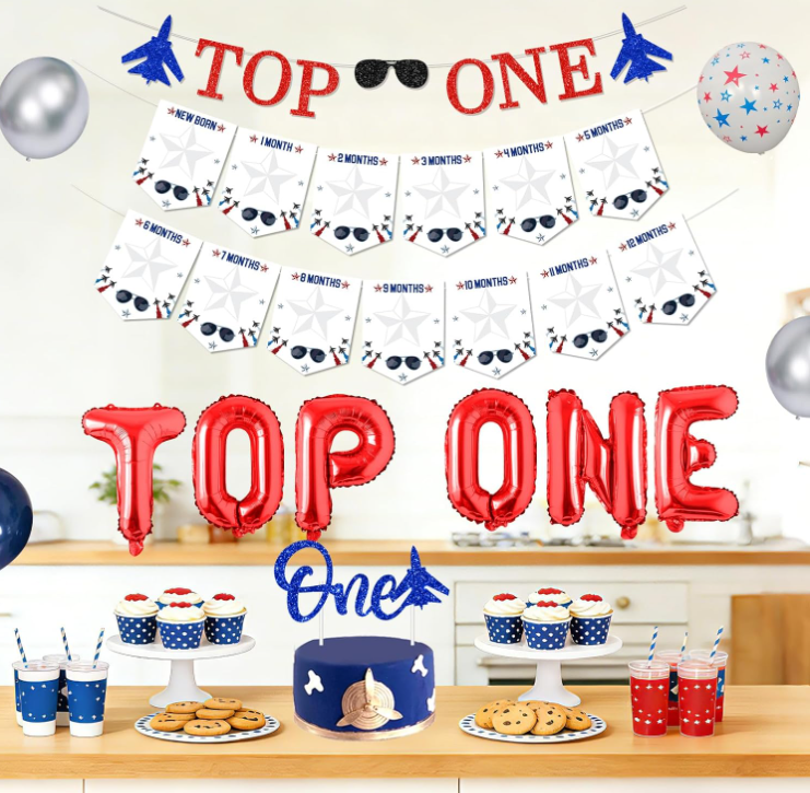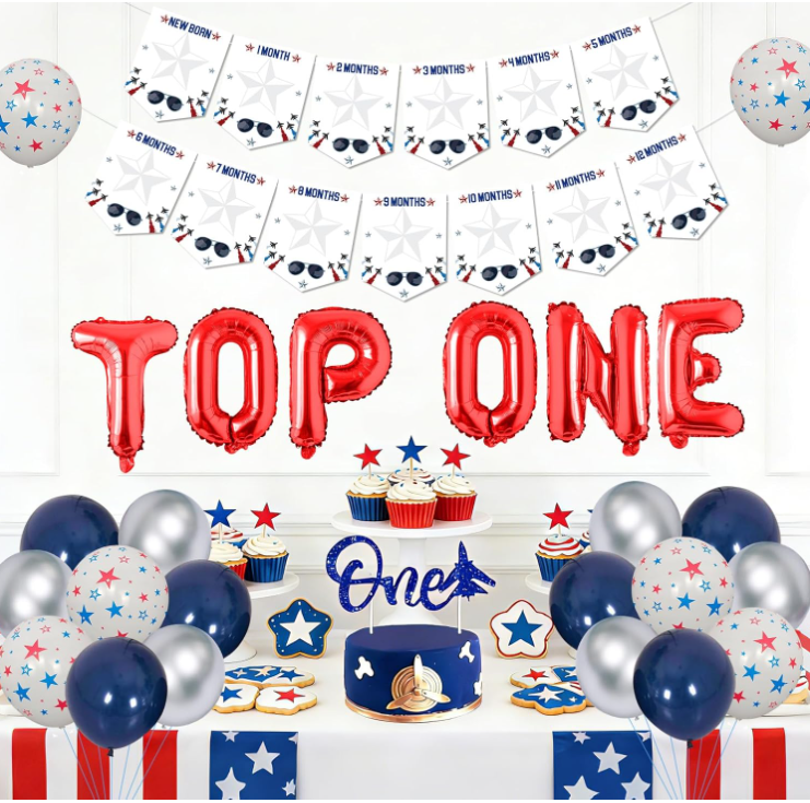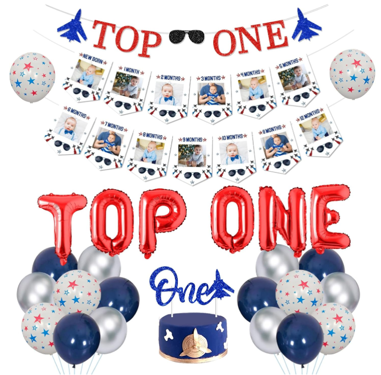 Kit de Décoration pour Fête d'Anniversaire 1 an Garçon Thème Jet Fighter : Bannières, Ballons en Aluminium, Accessoires de Photo pour Bébé, Guirlande et Décorations de Gâteau