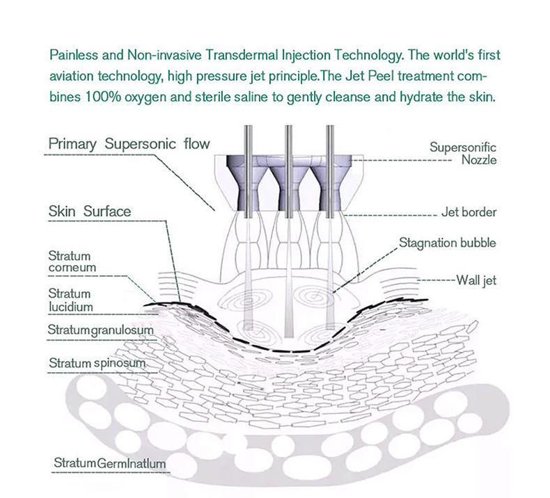 Injecteur d'oxygène, Exfolier, Pulvérisateur d'oxygène, Peau de jet, Hydrodermabrasion, Hydre dermabrasion, Oxygène de l'eau, Diamant dermabrasion, Dermabrasion de l'eauTechnologie