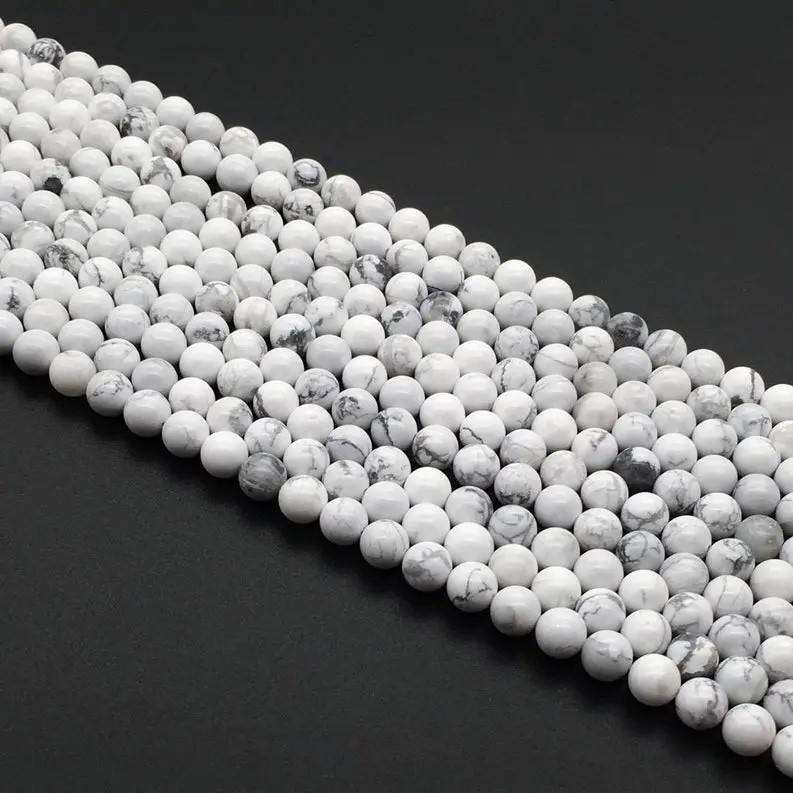 Perles rondes et lisses en howlite blanche naturelle