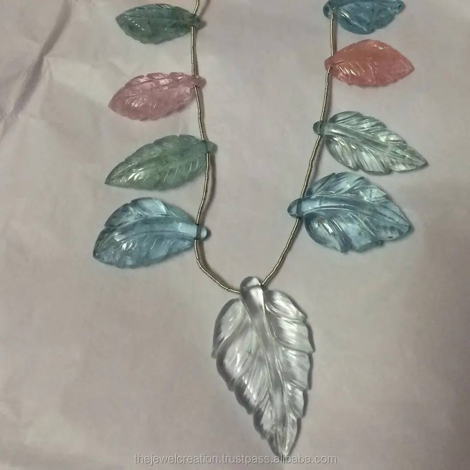 Nom du produit:Perles de pierres précieuses naturelles multi-aigue-marine sculptées en forme de feuilles et de fleurs