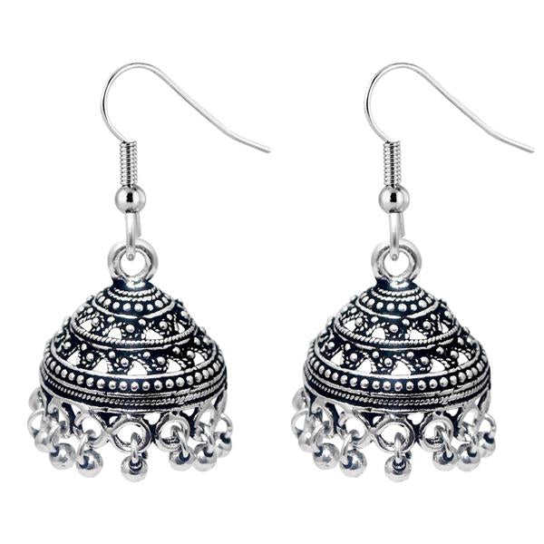 Jeweljunk 1309303 Oxidised Jhumki Earrings Classic Ethnic for Weddings Parties Gifts Made Brass Alloy Featuring Pearls Diamonds