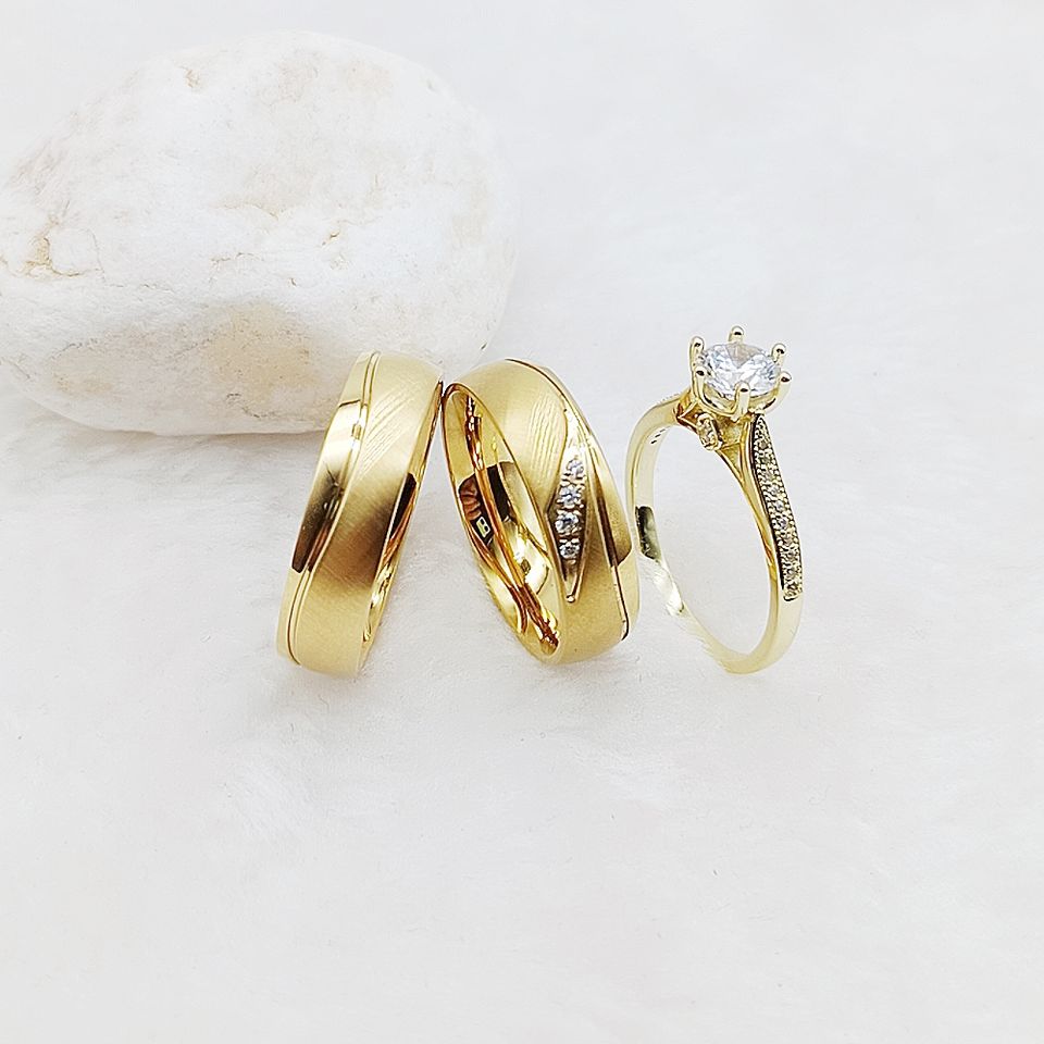 Bijoux faits à la main en argent sterling 925 véritable, alliances de mariage et de fiançailles avec diamants CZ, plaqués or 24 carats