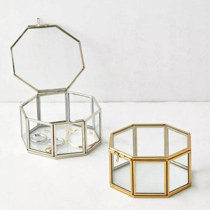 Ensemble de 2 boîtes de rangement pour accessoires de bijoux Boîte à bijoux décorative pour habillage Boîte à bibelots décorative avec cadre en verre et laiton finie sur mesure