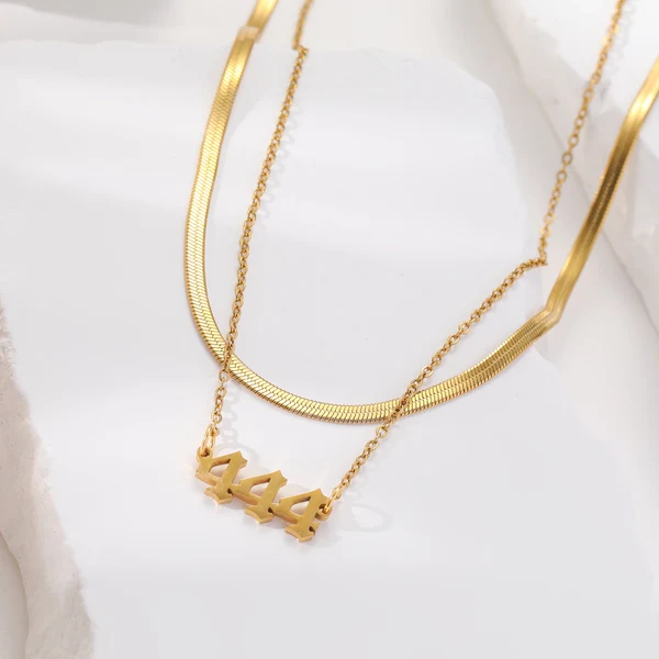 Colliers pendentifs pour femmes en acier inoxydable plaqué or 18 carats et 24 carats à double couche avec chaîne de serpent