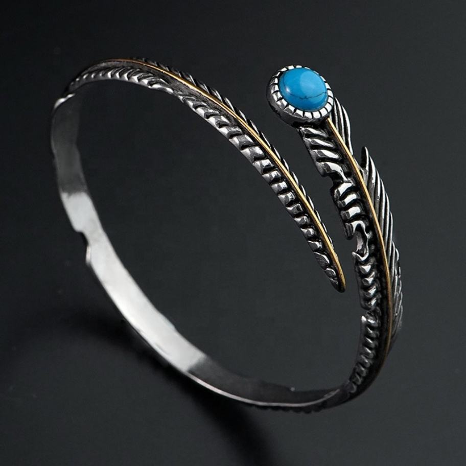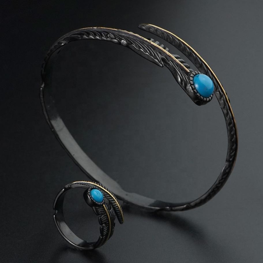 Parures de bijoux en acier inoxydable de haute qualité, design plume, style vintage et tendance, vente en gros