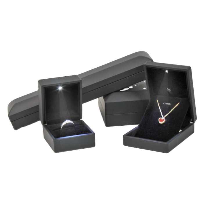 Insert de bijoux 2023 vide en plastique dur lumière LED boîte à bijoux boucle d'oreille ensemble de bijoux collier avec logo