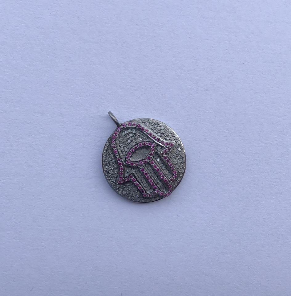 Product Name:Jewelry Manufacturer Pink Sphire Stone Hamsa Hand Pave Diamond