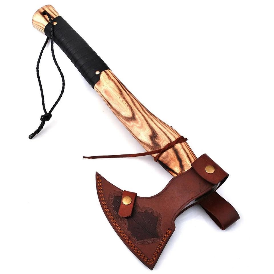 Jexmoo Tomahawk personnalisé en acier D2 de 19,5 pouces avec manche en bois de rose et étui en cuir, cadeau d'extérieur, fait main, qualité industrielle