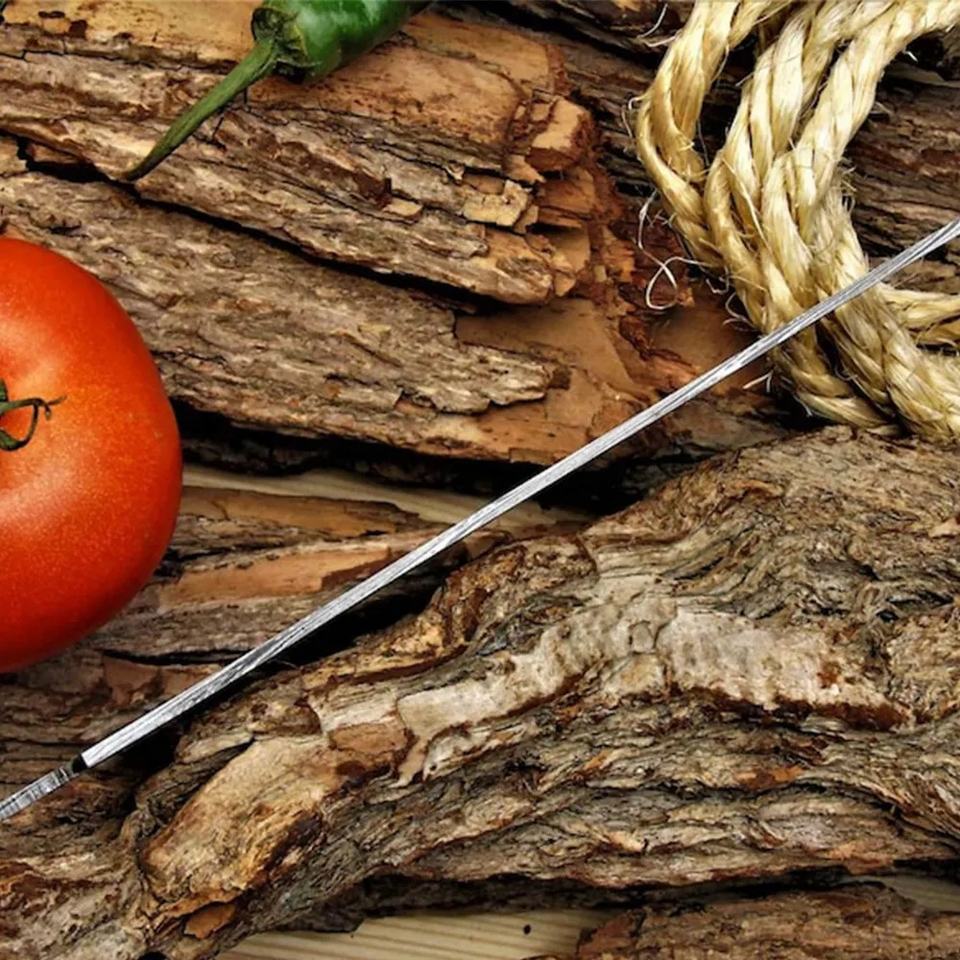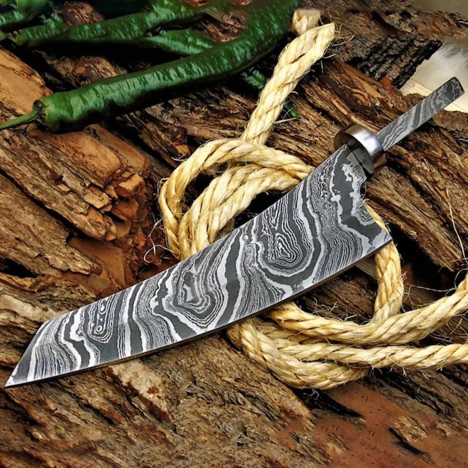 Couteau à lame vierge personnalisé fait main Jexmoo avec lame en acier Damas et étui en cuir - Cadeau pour chef