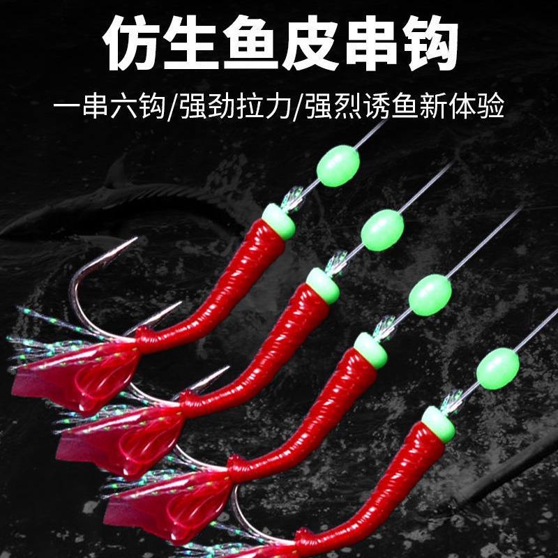 Hameçons à paillettes en peau de poisson Jg Premium, rouge, taille 18 6 9, leurre pour truite, pêche en eau salée, acier à haute teneur en carbone, super résistant