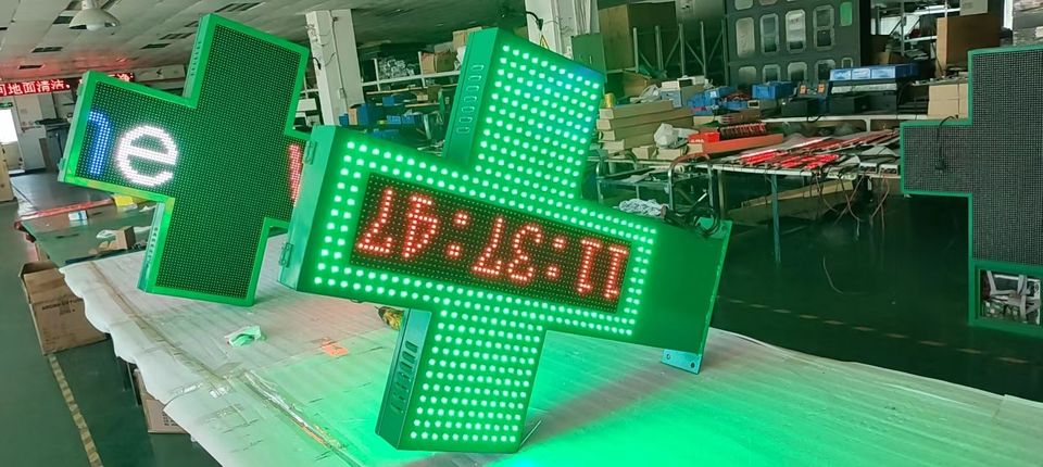 Panneau LED personnalisé Jhering Écran LED croisé double face Écran LED polychrome P10 Cross pour pharmacie