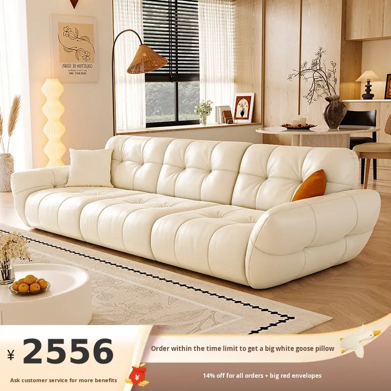 Ji&2025 Nouveau modèle Canapé une place en cuir véritable style crème européen luxe léger pour salon - Olympia Multifonctionnel