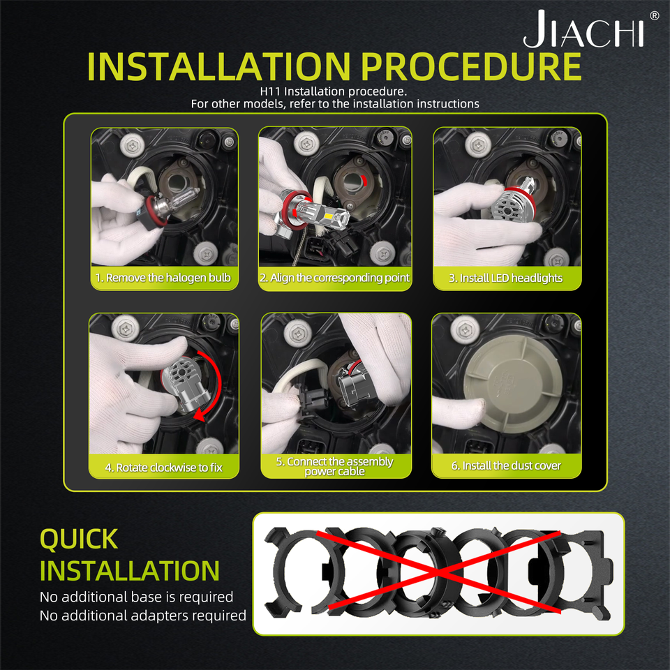 JiaChi Factory Automobiles Lampe à LED H1 Ampoule de phare LED de remplacement DRL Non Polarité 12v H11 H7 H4 9005 9006 Ampoule de phare