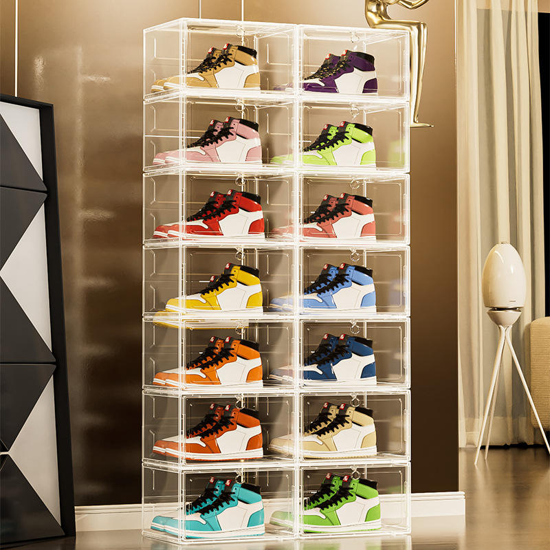 Jiabaisi Transparent Shoe Storage Box Wall Mounted Stackable Organizer Rectangle Large Size Home Decor Basketball Sneaker