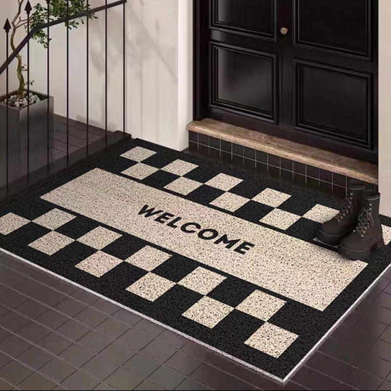 Tapis de porte Jiaozhiyuan, rectangulaire, motif géométrique, PVC, résistant aux taches, antidérapant, pour usage domestique, texte de bienvenue, tapis d'extérieur et d'intérieur
