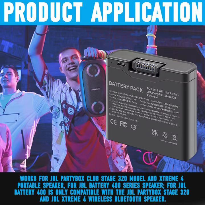 Batterie lithium-ion de remplacement Jiazijia pour enceinte portable JBL PartyBox Stage 320 Xtreme 4, 10000mAh 7.4V