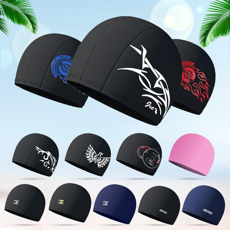 Bonnet de bain en polyester Jiehu, couleur unie, élastique, unisexe, pour adultes, hommes et femmes