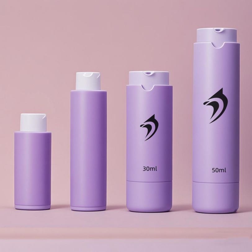 Flacon de lotion solaire Jieting Packaging personnalisé, violet mat, 45 ml, flacon rotatif sous vide 25 ml, flacon sans air rechargeable avec insert de remplacement