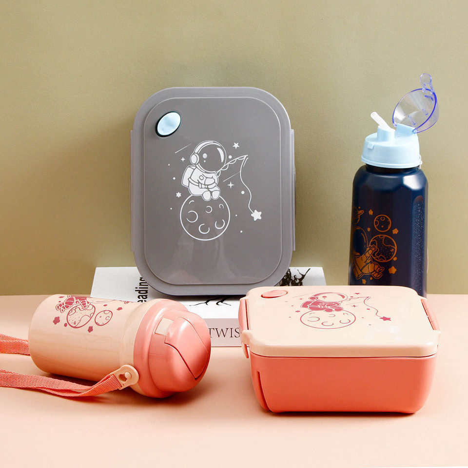 Jieyang Lebo, nouvelle collection, boîte à lunch en plastique à 3 compartiments, ensemble bouteille d'eau et cuillère pour enfants