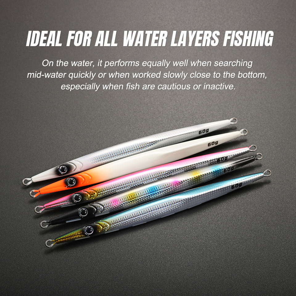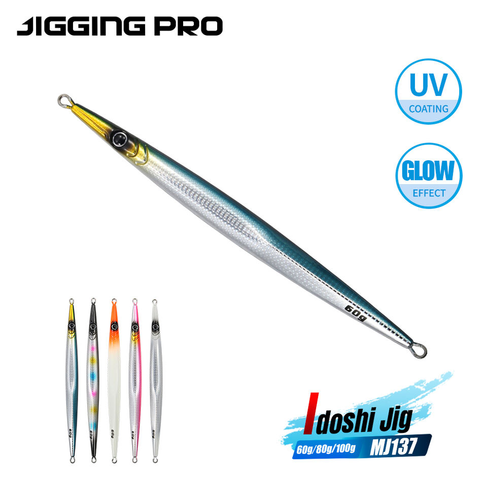 Leurre de pêche jigging professionnel pour thon et maquereaux 60g 80g 100g – Équipement de pêche en mer en métal pour poissons d'eau salée, bar et pêche en bateau en océan