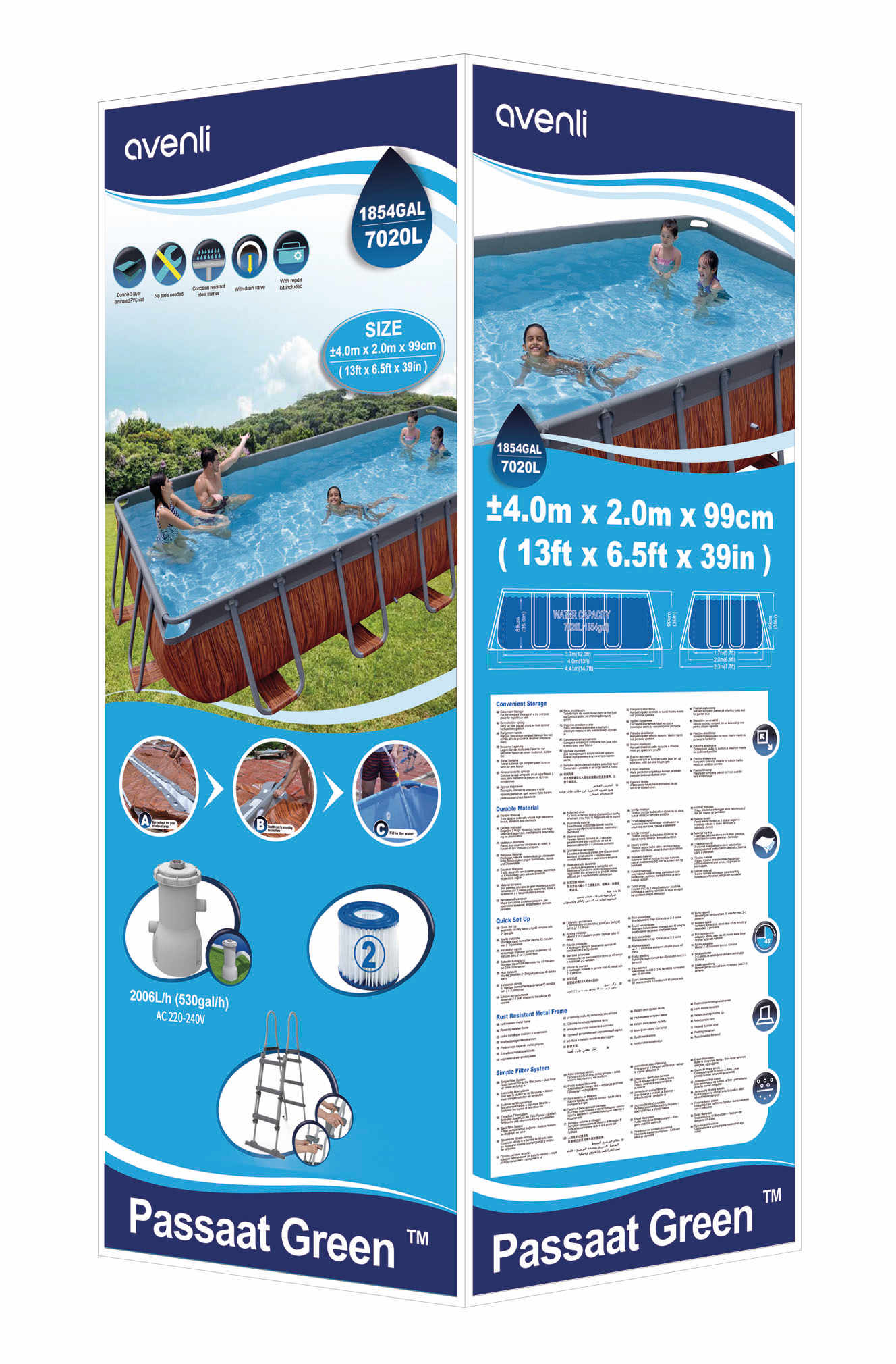 4.0m * 2.0m * 99cm(13 '* 6.5' * 39 ")