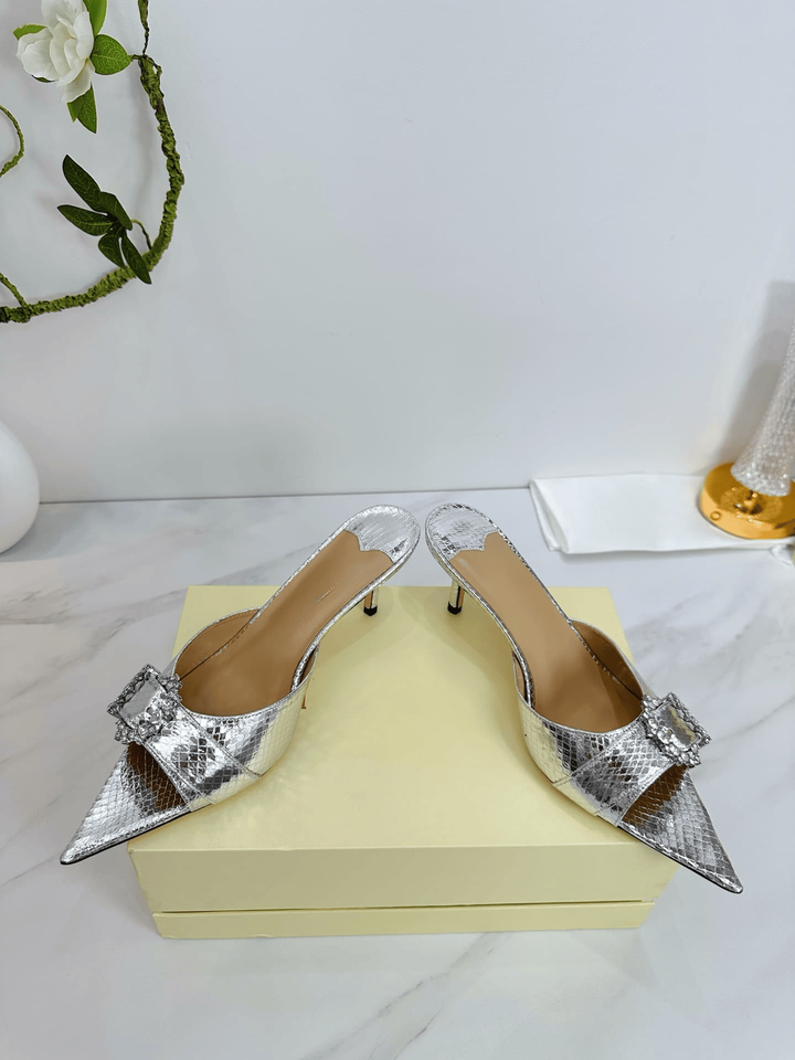 Mules à talon chaton à bout pointu et décorées de strass pour les soirées et événements festifs