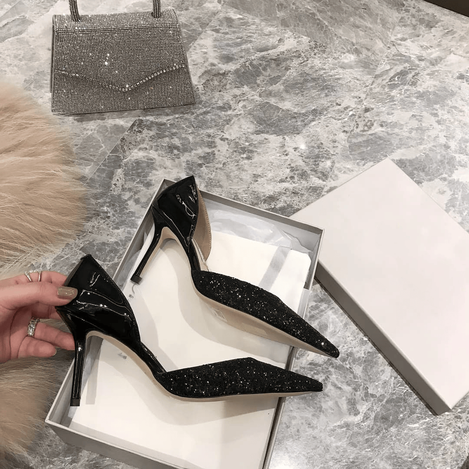 Escarpins Jimmy à bout pointu et paillettes, style D'Orsay, à talons hauts, pour soirées et événements formels