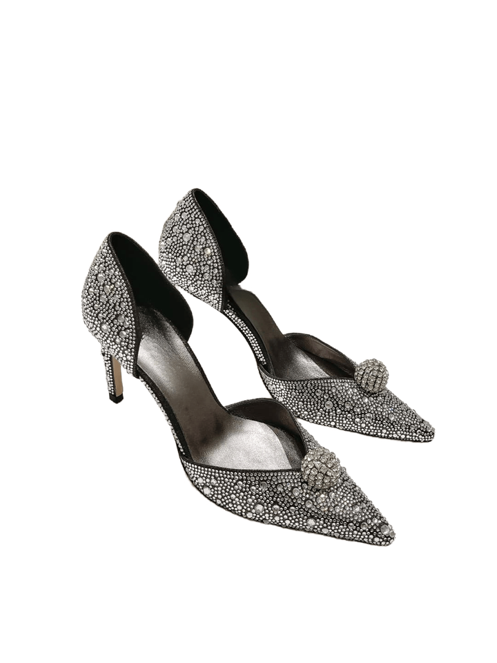 Escarpins Jimmy à bout pointu ornés de strass avec découpe D'Orsay, talon aiguille, talons de soirée scintillants pour mariage et fête