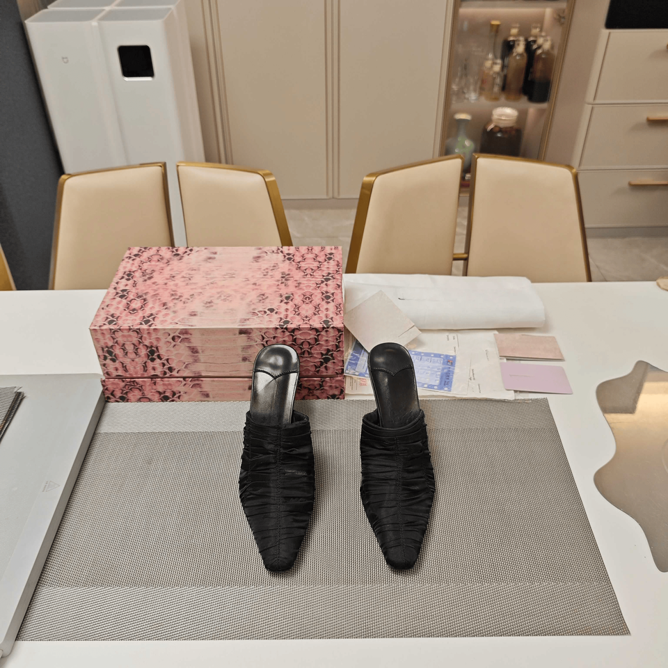 Mules Jimmy pour femme à talon haut, bout carré, dos nu en maille froncée, à enfiler, pour soirées et tenues habillées