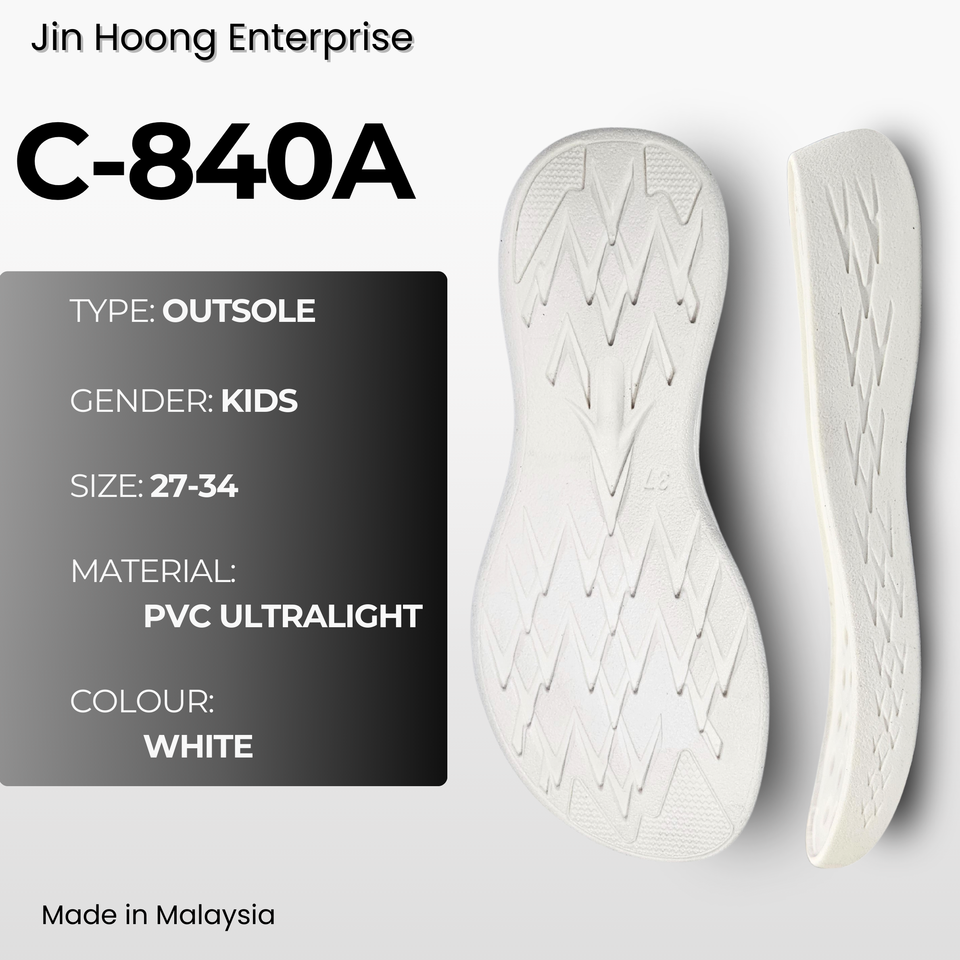 Jin Hoong Kids' C-840A White PVC Ultralight Outsole Lightweight Comfortable Durable Anti-Slip Water Resistant 30mm Thickness
