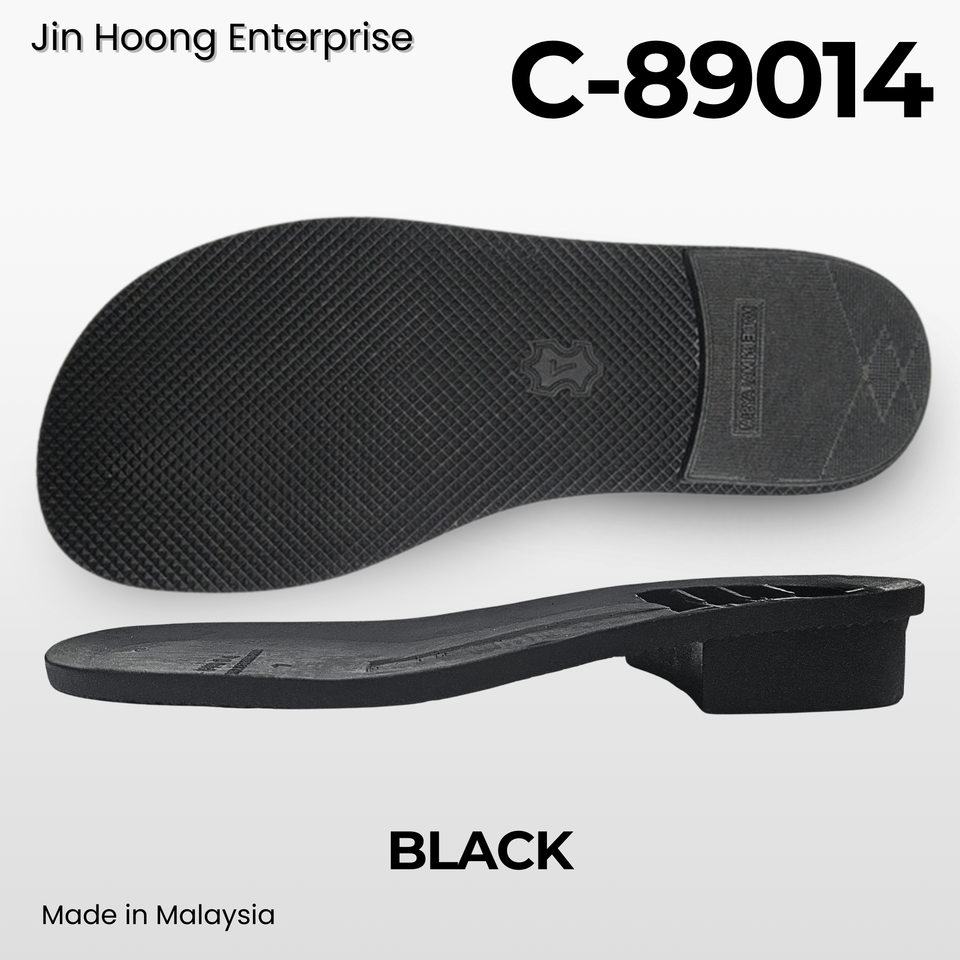 Jin Hoong Men C-89014 Lightweight Black PVC Anti-Slip Durable Outsoles Slippers Made in Malaysia