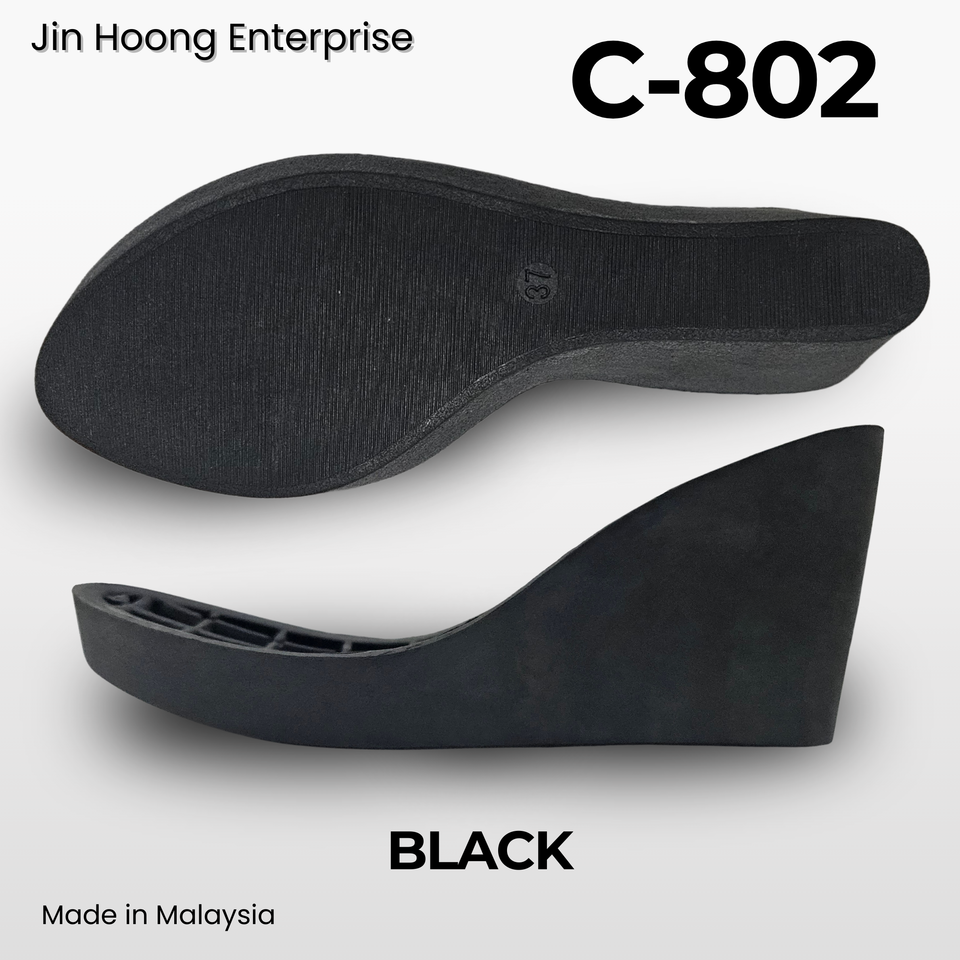 Jin Hoong Women's Durable Anti-Slip PVC C-802 Wedges Black Outsole Water-Resistant Features 83mm Thick Malaysia