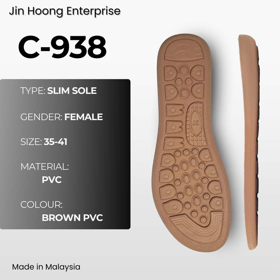 Jin Hoong Women's Lightweight Durable Anti-Slip PVC C-938 Brown Outsole Water-Resistant Slippers