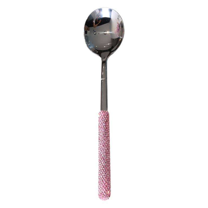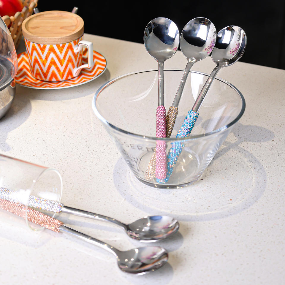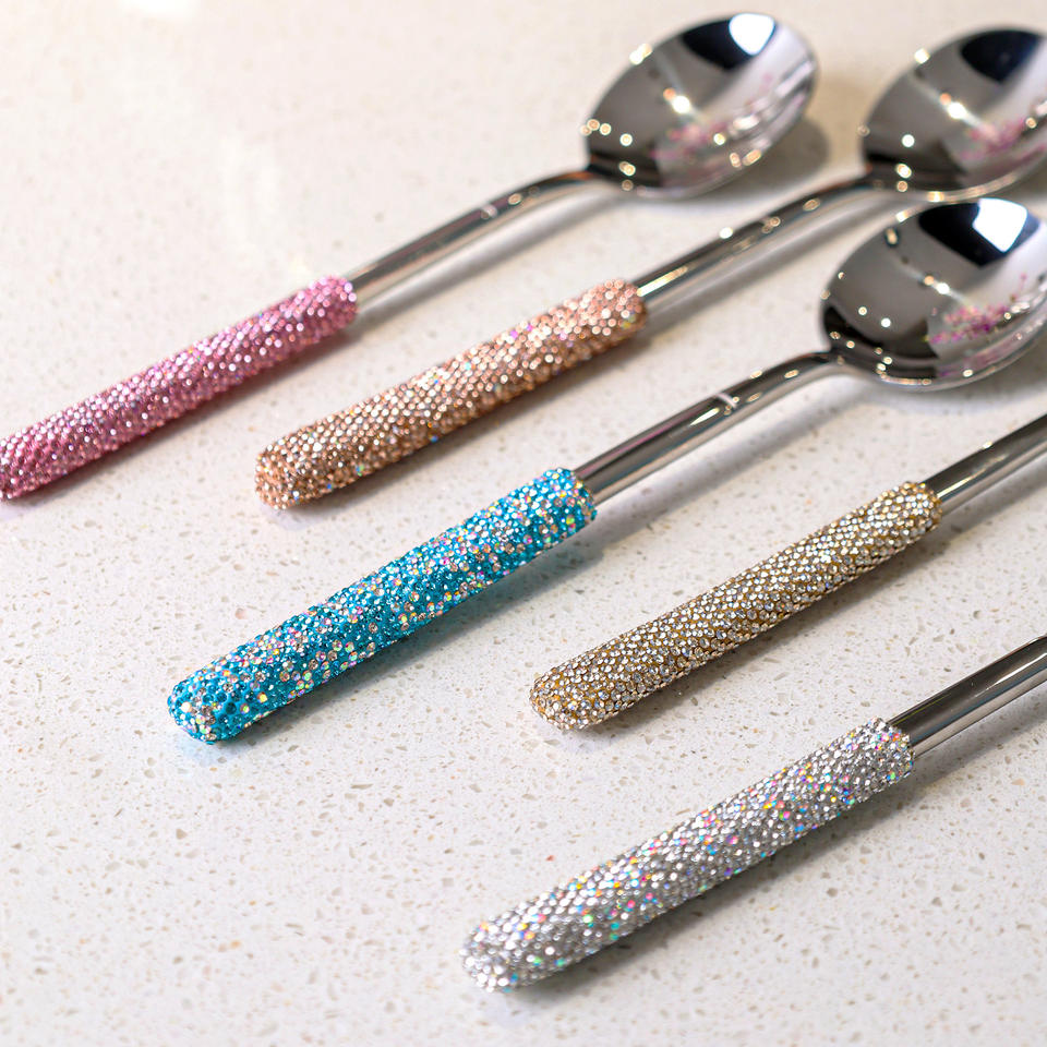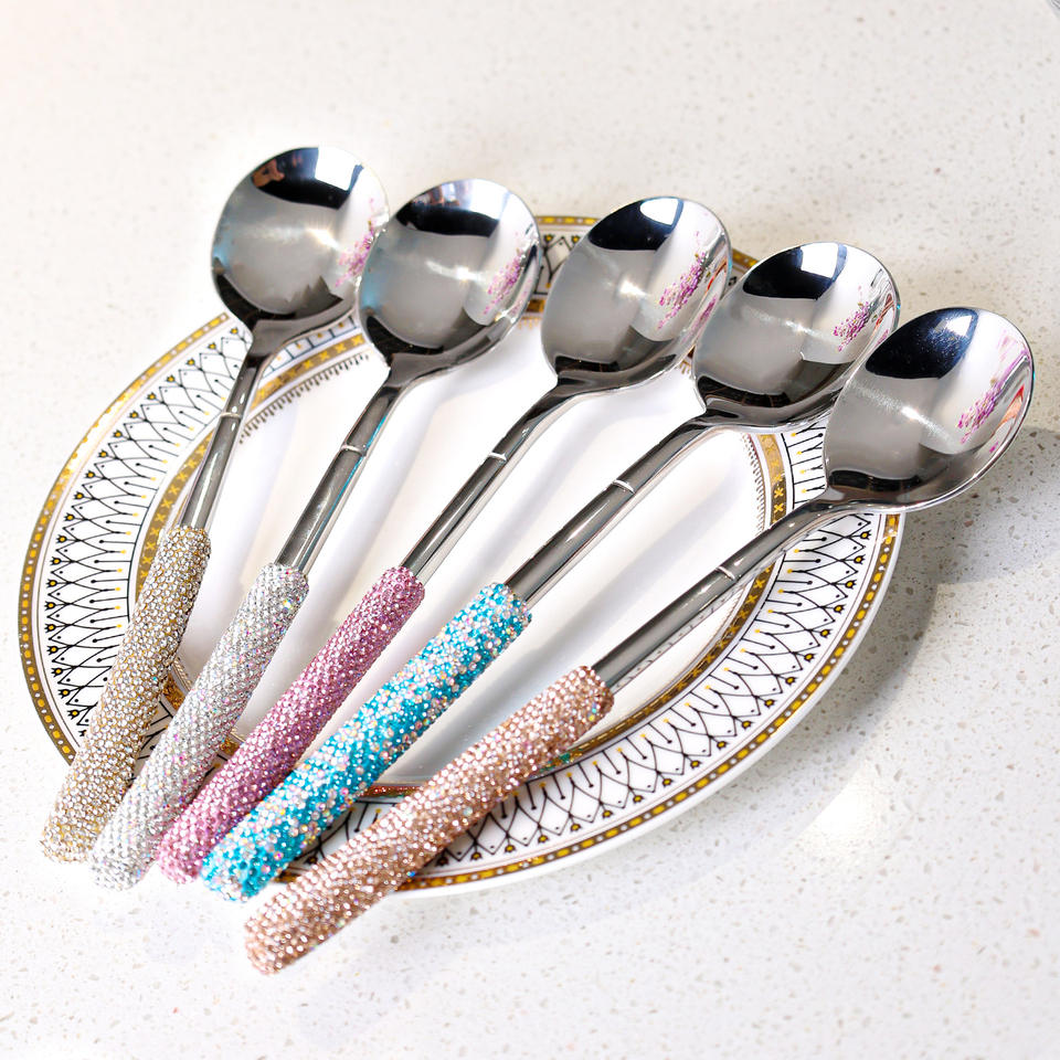Ensemble de cuillères en acier inoxydable Jin Hui avec strass, 5 pièces, poli miroir, cuillères à café, à thé, à soupe, manche décoratif, vaisselle de cuisine