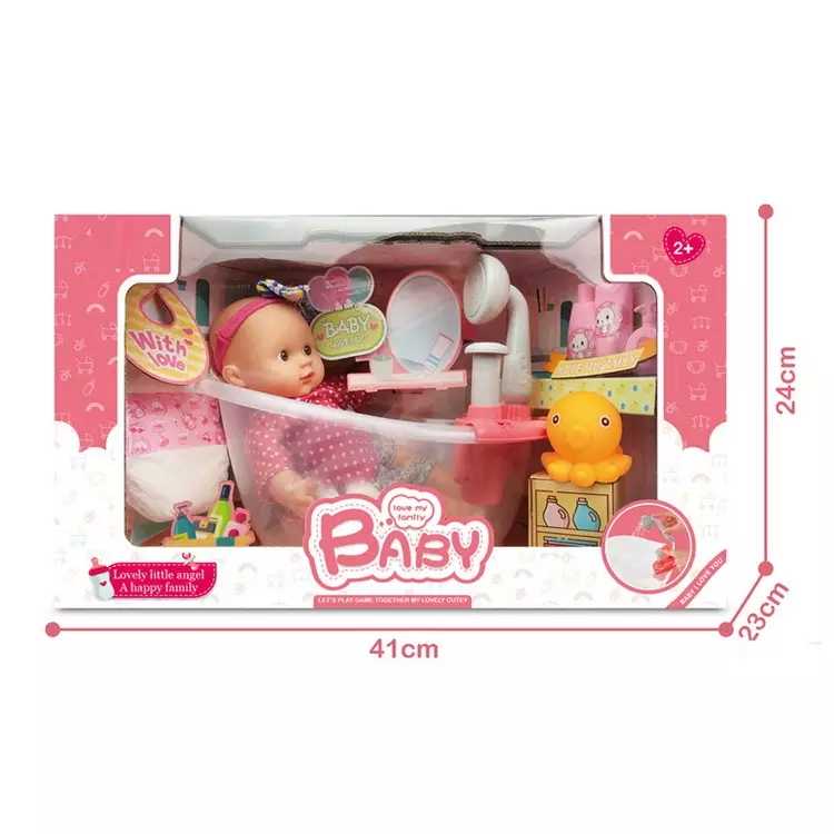 JinYing 12 pouces coton corps bébé vinyle émail poupée faire semblant jouer jouet avec jet d'eau en plastique baignoire pour enfants
