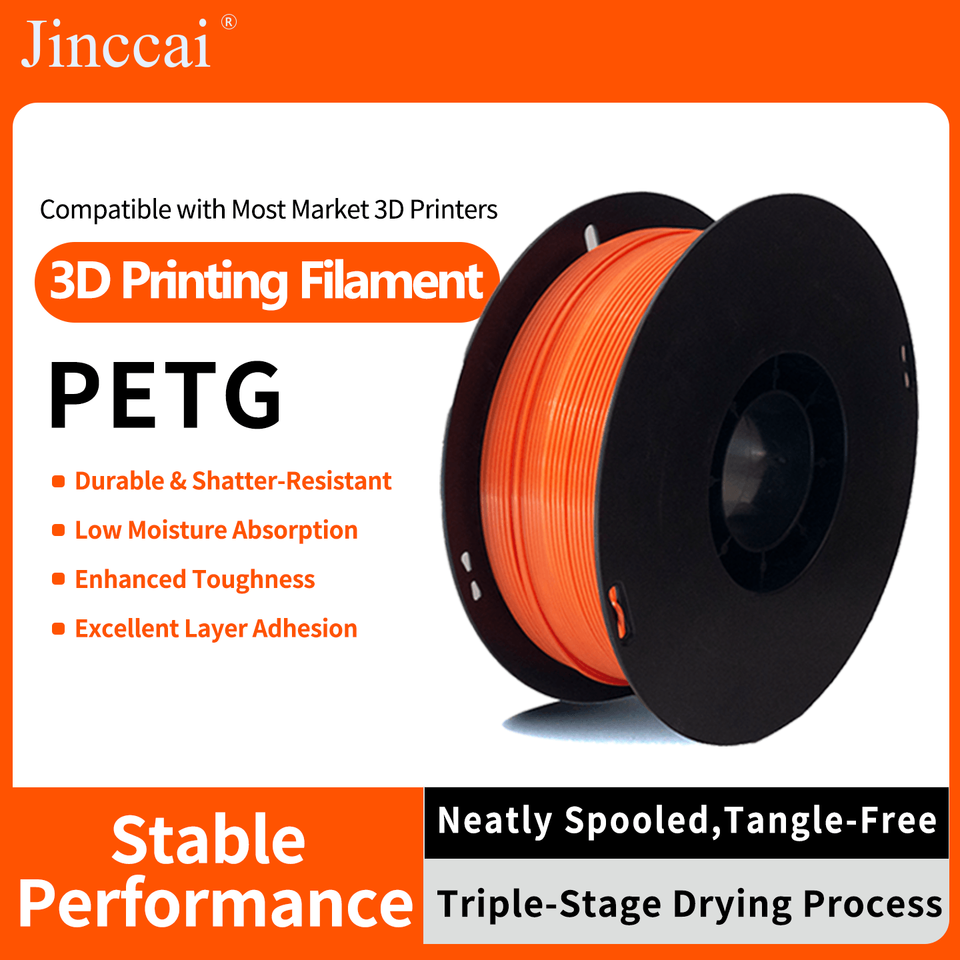 Filament PETG Jinccai à large compatibilité - Diamètre 1,75 mm compatible avec les imprimantes 3D industrielles et de bureau, bobine de 1 kg, compatible avec le filament PLA