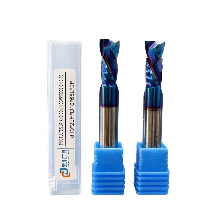 Jinchuan Personnalisation OEM/ODM Fraise à compression spirale en carbure à 2 dents pour le travail du bois CNC HRC45-60 4-12mm